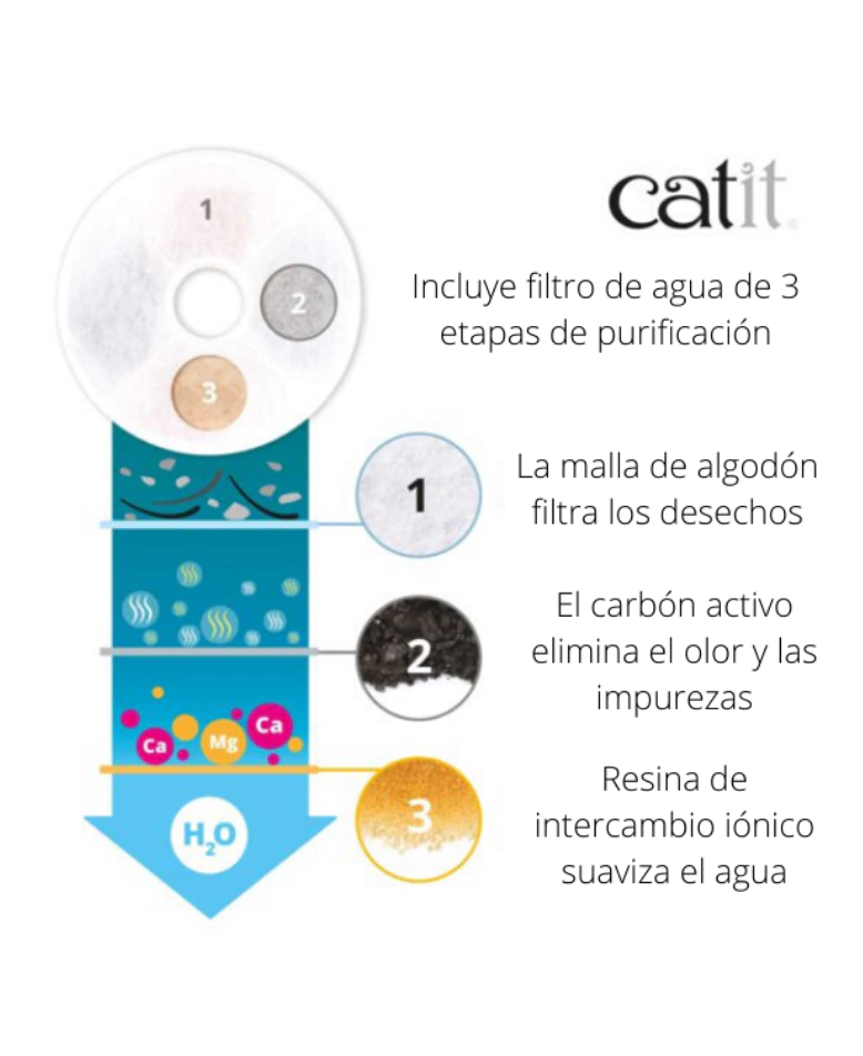 Incluye filtro de agua de 3 etapas de purificación: